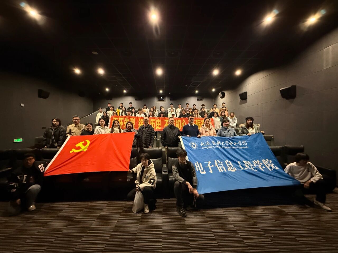 2025年是中国人民志愿军抗美援朝出国作战75周年。为大力弘扬伟大抗美援朝精神,深入推进新时代爱国主义教育,11月25日,大连医科大学中山学院电子信息工程学院党支部联合艺术设计学院党支部组织师生党员赴奥斯卡国际影城,集中观看爱国主义影片《志愿军:浴血和平》,开展“弘扬伟大抗美援朝精神 勇担新时代党员使命”爱国主义影片观影活动。学院党支部书记、辅导员及师生党员、入党积极分子等共计70余人参加此次活动。