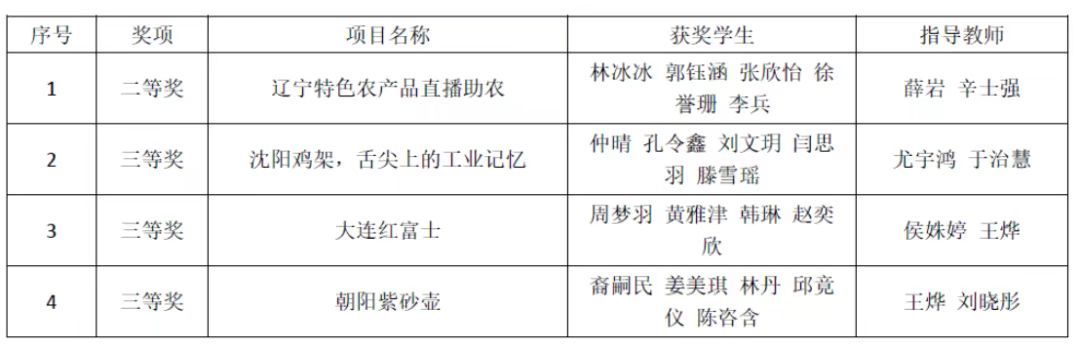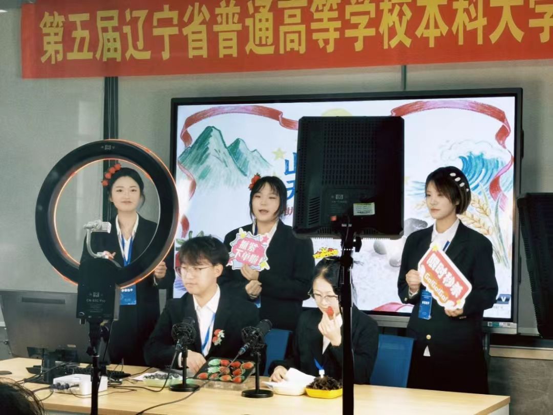 近日,由辽宁省教育厅主办、辽宁对外经贸学院承办的第五届辽宁省普通高等学校本科大学生电商直播大赛总决赛落下帷幕,来自省内的40所高校60支队伍进入总决赛。由我院林冰冰同学主持的项目团队进入总决赛并荣获二等奖。其余三支队伍获三等奖。
