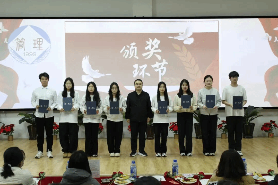 尾声阶段,学院领导为获奖班级颁发荣誉证书,并为辅导员助理授予聘书,为这场青春盛会画上圆满句点。