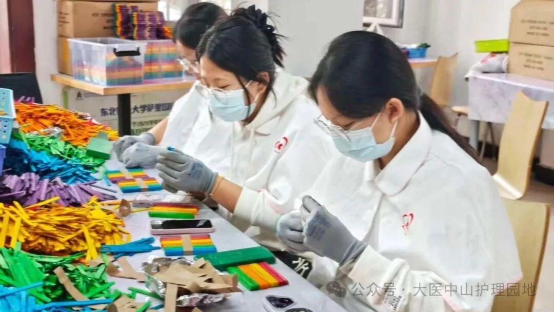 习近平总书记强调:“各级党委和政府、全社会都要关心关爱少年儿童,为少年儿童茁壮成长创造有利条件”。10月15日、22日、29日,大连医科大学中山学院志愿护理服务队共派遣30名志愿者分批次走进大连市沙河口区小海豚自闭症康复中心,用专业与温度开启了一场“关星”之旅。音乐课上,志愿者们俯身轻声安抚孩子们突然的情绪波动,让旋律重新在笑脸上跳跃;体感游戏室里,志愿者全程半蹲陪护,用眼神与手势为“小玩家”们加油,让每一次挥臂都充满自信。在手工区,志愿者们按照模板的样子搭木棍。活动尾声,大家把散落的木块归位、地面拖净,用整洁的场地为这场陪伴画上圆满句号。