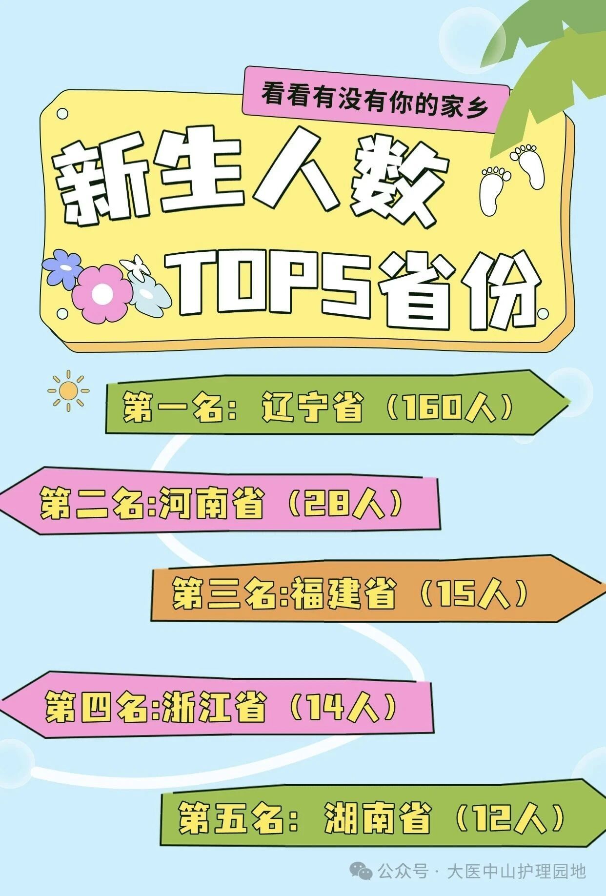 “万里江山皆入眼,五湖学子共书声”,国际护理学院2025级新生们共来自15个省、4个自治区、2个直辖市 。新同学快速 “破冰”小游戏:聊聊家乡的美食美景、文化特色,一起解锁祖国的大好风光吧! 其中,新生人数Top5省份分别为:辽宁省(160人)、河南省(28人)、福建省(15人)、浙江省(14人)、 湖南省(12人) ,看看有没有你家乡?