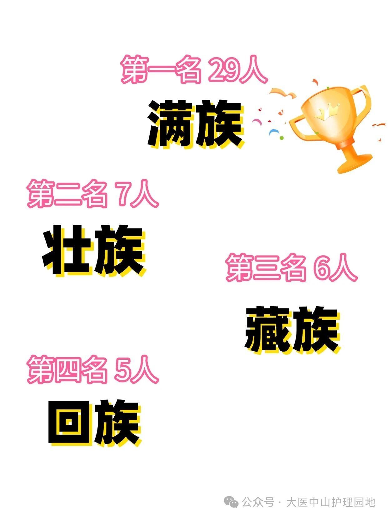 石榴花开映华夏,民族团结一家亲。各民族同胞始终在华夏土地上紧密相依,如今也一同汇聚国际护理学院。让我们来揭晓今年学院内人数最多的4个少数民族吧~他们分别是:满族29人、壮族7人、 藏族6人、回族5人。 五十六个民族血脉相连,无论我们来自哪个民族,都是中华民族大家庭里不可或缺的一员。让我们携手同心、并肩前行,共绘祖国昌盛新图景!