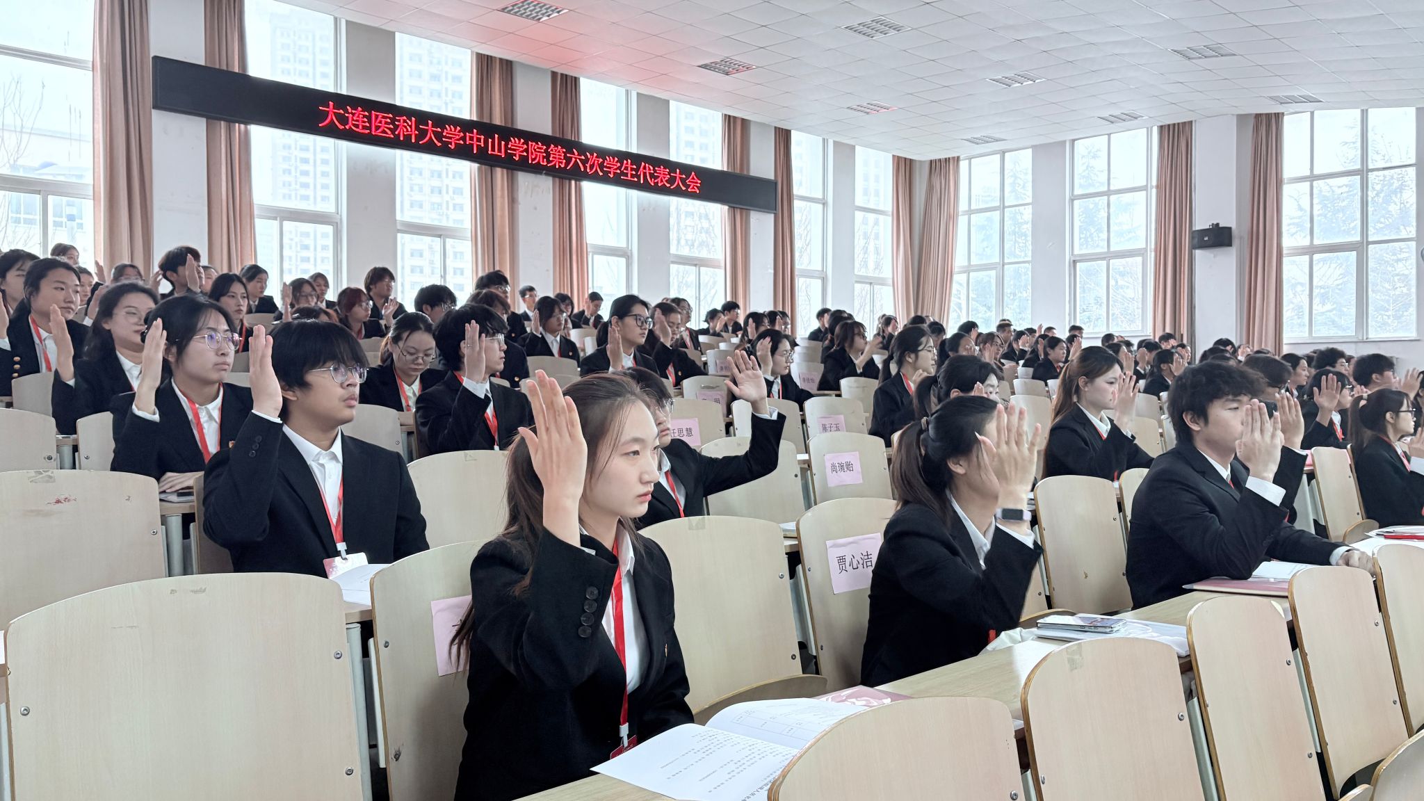 全体会议期间,通过了《大连医科大学中山学院第六届学生委员会委员、学生会第二十四届主席团选举办法(草案)》,通过了学生委员会委员候选人、总监票人、监票人、总计票人、计票人名单。