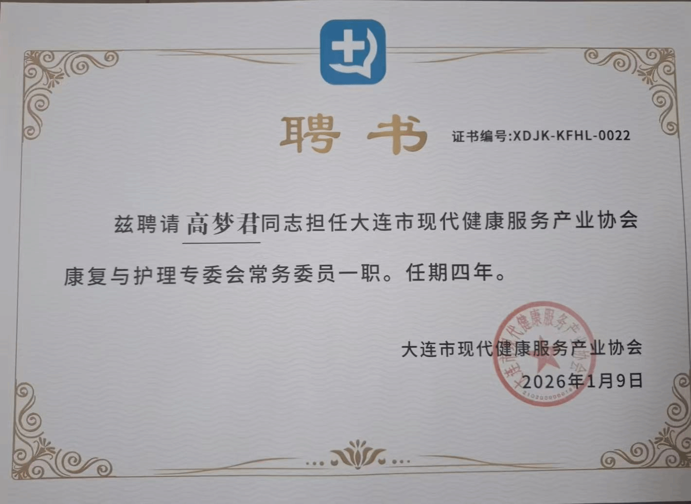2026年1月9日,大连市现代健康服务产业协会康复与护理专委会成立大会召开。我校康复医学院副院长高梦君、国际护理学院常务副院长李世博当选专委会常务委员,学校附属康复医院常务副院长刘传霞当选委员,充分体现了我校在康复医学与护理学领域的学科实力和行业影响力。