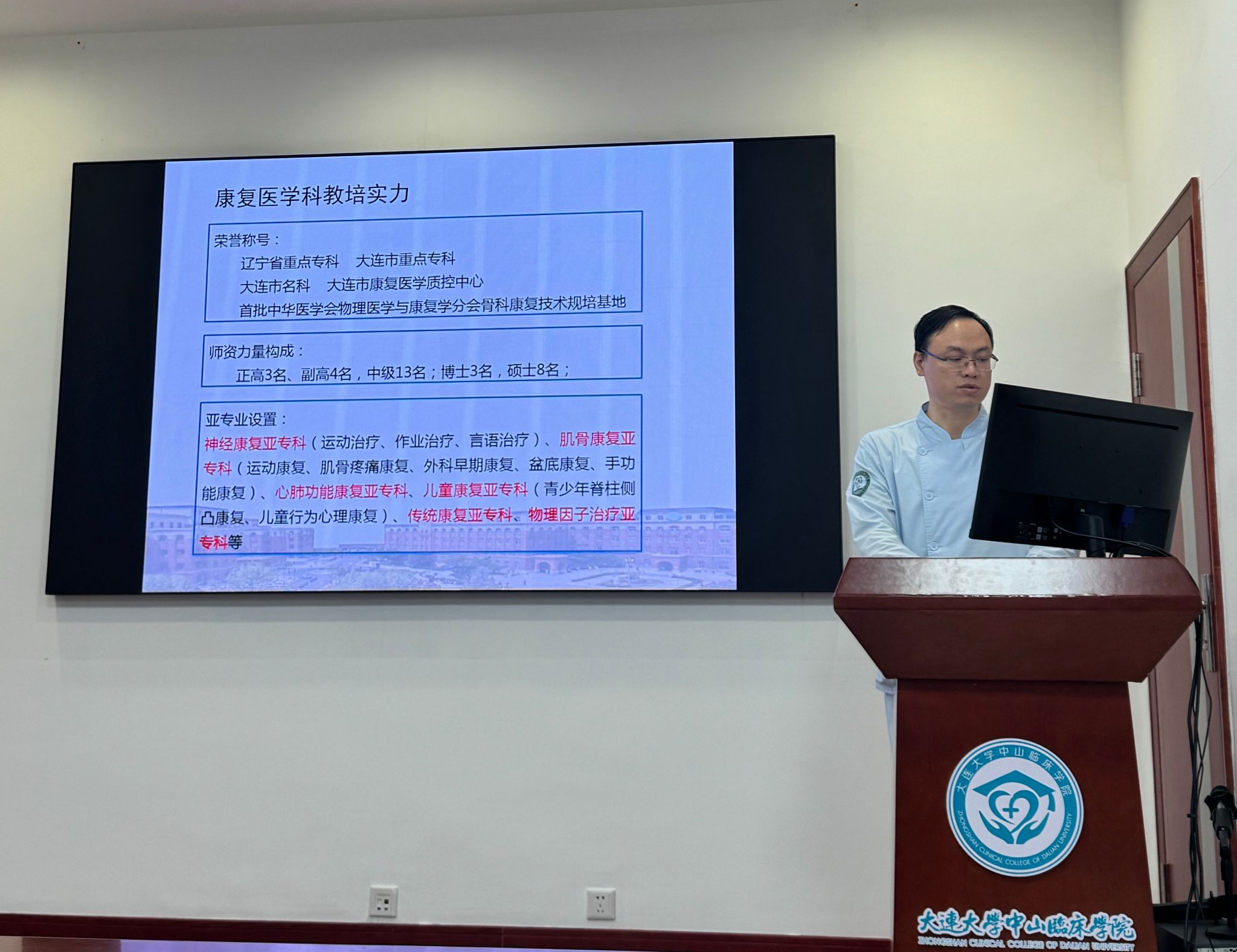 1月16日,高梦君、高超、耿志健、吴俣铮一行前往大连大学附属中山医院。教务部部长蔡鸣、康复科主任叶冬梅、车世钦对我校老师的到访进行了热情接待并召开了实习座谈会。