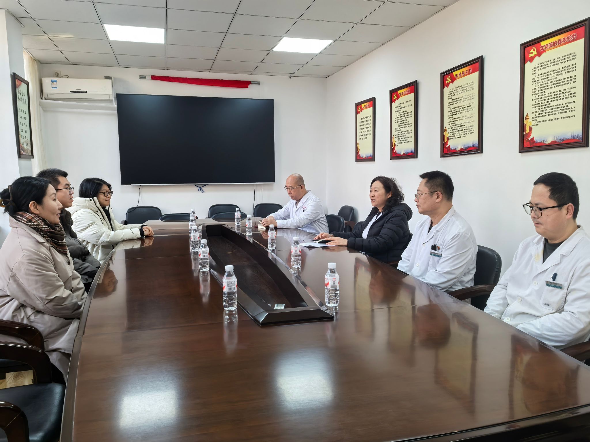 在大连市中医医院,走访组重点检查了学生的实习环境与安全保障措施,并与院方相关负责人及带教老师进行了座谈。双方围绕实习学生的专业实践、岗位胜任力培养等议题交换了意见,并就实习生毕业论文的选题、研究与临床实践结合指导等环节进行了深入探讨与交流,旨在进一步提升学生实践与科研综合能力。