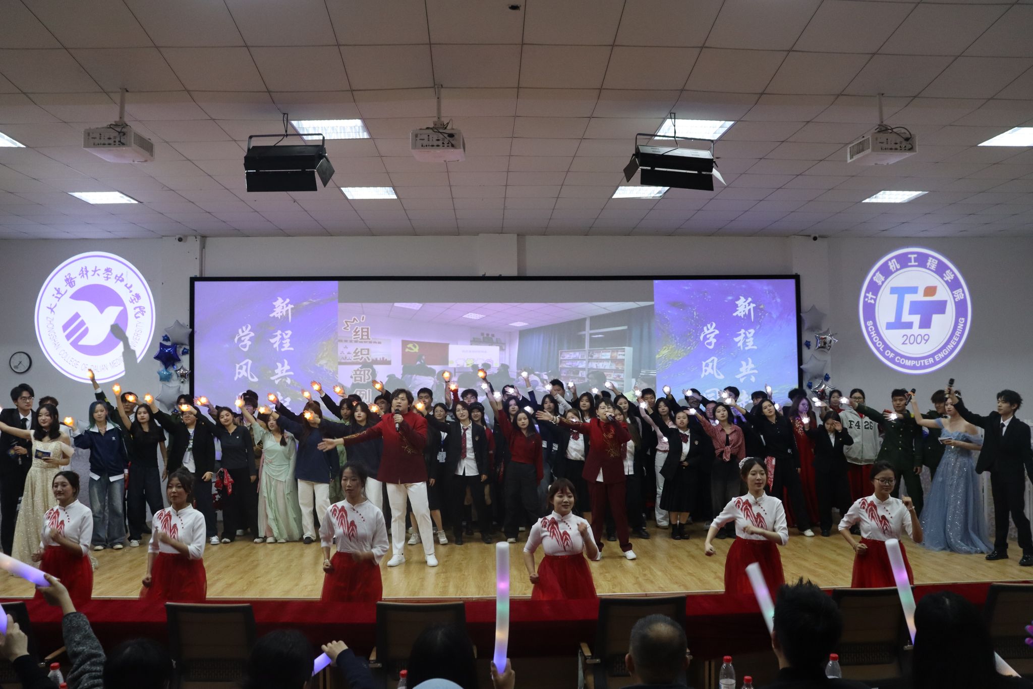 青春逢盛世,奋斗正当时。11月24日晚,大连医科大学中山学院计算机工程学院2025年“学风同沐·新程共起”迎新晚会温情启幕。党政办公室主任、国际教育学院院长张佳玺,应用技术学院院长陈驰应邀出席,与计算机工程学院、现代教育技术中心全体教职工及学子齐聚一堂,以歌舞传递真挚情谊,以才艺展现青春风采,在这场精彩纷呈的视听盛宴中,共同书写下青春与奋斗的崭新篇章,引领2025级新生们与学院师生一起携手共同谱写大学生活的开篇新章。