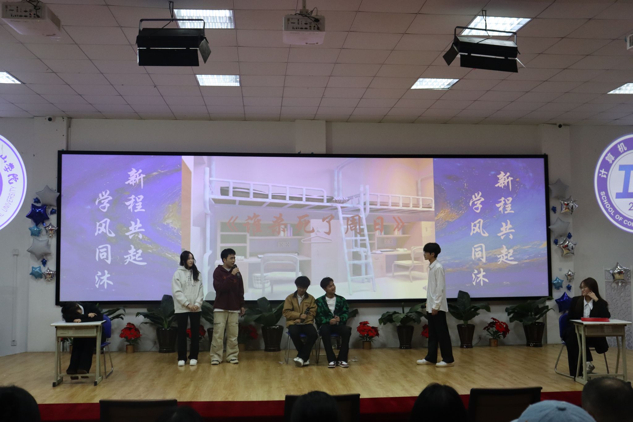 从点燃全场的青春热舞,到唤起共鸣的经典歌曲;从幽默诙谐的现实题材小品,到气势恢宏的爱国主题演出,每个节目都凝聚着师生们的用心与创意。晚会现场气氛热烈,掌声不断,这正是计算机工程学院学子们多才多艺的生动缩影,更是他们朝气蓬勃、昂扬向上的青春风采。