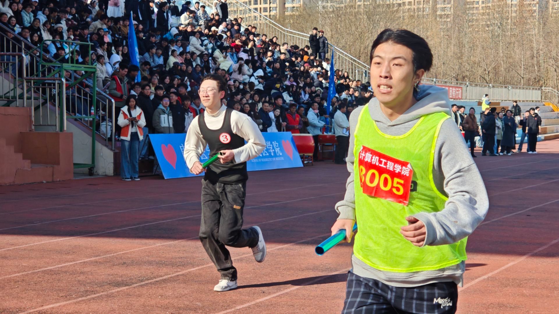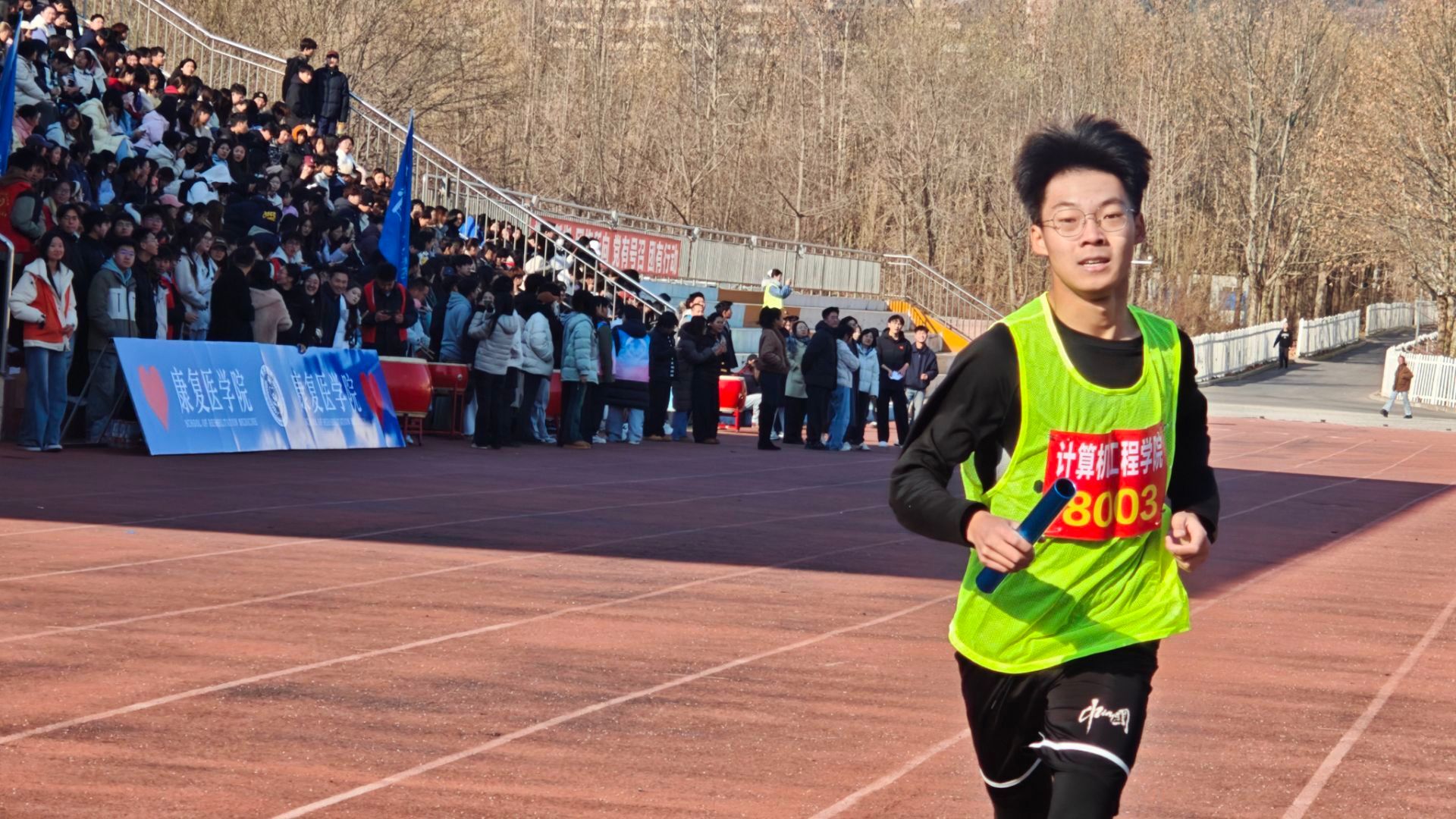 比赛当日,赛道上旌旗招展,气氛热烈。学院选手整装待发,眼神中满是坚定与自信。发令枪响,选手们如离弦之箭冲出起点,在红色精神的感召下,他们步伐铿锵、斗志昂扬。赛程中,有人体力不支却咬牙坚持,有人主动为队友加油鼓劲,运动员们拧成一股绳,将个人力量融入团队拼搏之中。赛场外,学院师生组成的助威团高举“计算机工程学院”院旗,呐喊声、加油声此起彼伏,成为选手们勇往直前的强大动力。