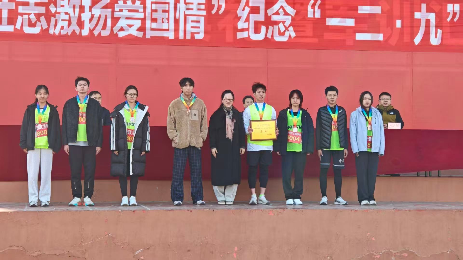 最终,凭借稳定的发挥和坚韧的意志,学院代表队成功拿下全校第三名。手捧沉甸甸的奖牌与牌匾,参赛学子们难掩激动:“这场比赛不仅是体能的较量,更是对爱国精神的传承。能为学院争光,所有的汗水都值得!”颁奖台上,师生共同定格这一荣耀时刻,一张张笑脸背后,是计算机工程学院学子永不言弃的青春底色。