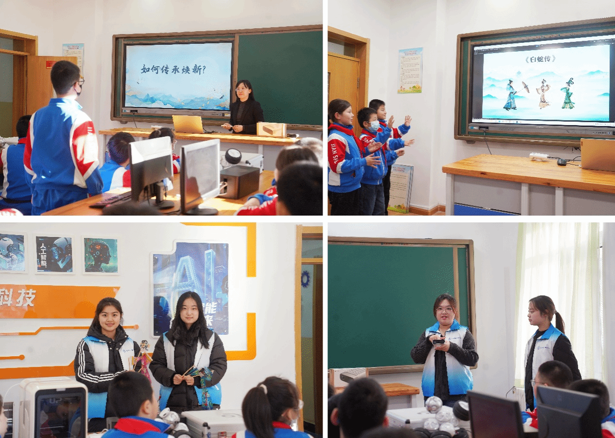 我院师生团队带来了一场别开生面的科创公开课。课程以千年皮影焕新记为主题,深度解锁了皮影戏这一非物质文化遗产的独特魅力。课堂上通过生动讲解与实物展示,让孩子们沉浸式领略传统工艺的匠心巧思。为让千年皮影“活”起来,学生们利用AI文生图技术生成复州皮影戏经典造型,并通过人机交互技术在虚拟现实中体验操纵皮影的乐趣,现场氛围热烈。
