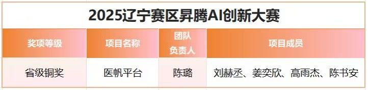 我院医帆团队聚焦AI技术在医疗场景的创新应用,所提交的方案兼具技术创新性与实际落地价值,得到评委专家的高度认可。最终,团队在决赛现场沉着应答、精准展示,成功斩获省级铜奖。