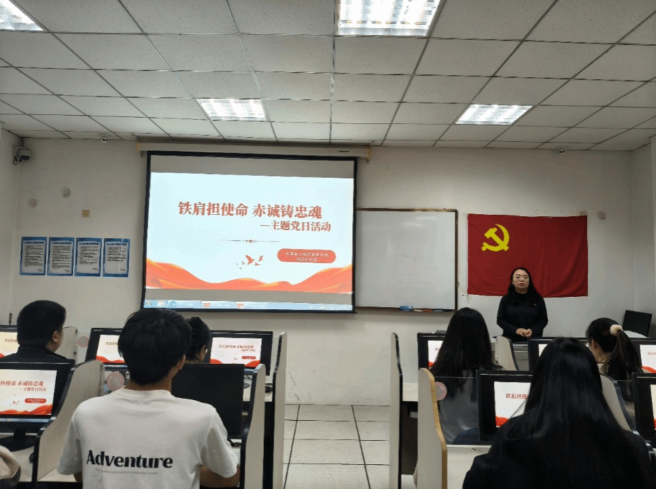 为深入展现新时代共产党员的担当精神,筑牢对党忠诚的思想根基,计算机工程学院党支部于10月15日开展了“铁肩担使命,赤诚铸忠魂”主题党日活动,激励全体党员以坚定信念履行使命,以无限赤诚砥砺初心,奋力谱写新时代育人事业新篇章。全体党员、积极分子参加活动,活动由支部组织委员暴博群主持。