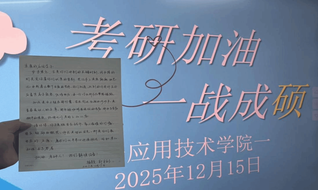 郭宇剑以一纸手写加油信,为考研学子倾情助力。这份专属温暖,让备考路上的学子倍感陪伴力量,恰似无形之手,托举他们步履铿锵、坚韧向前。