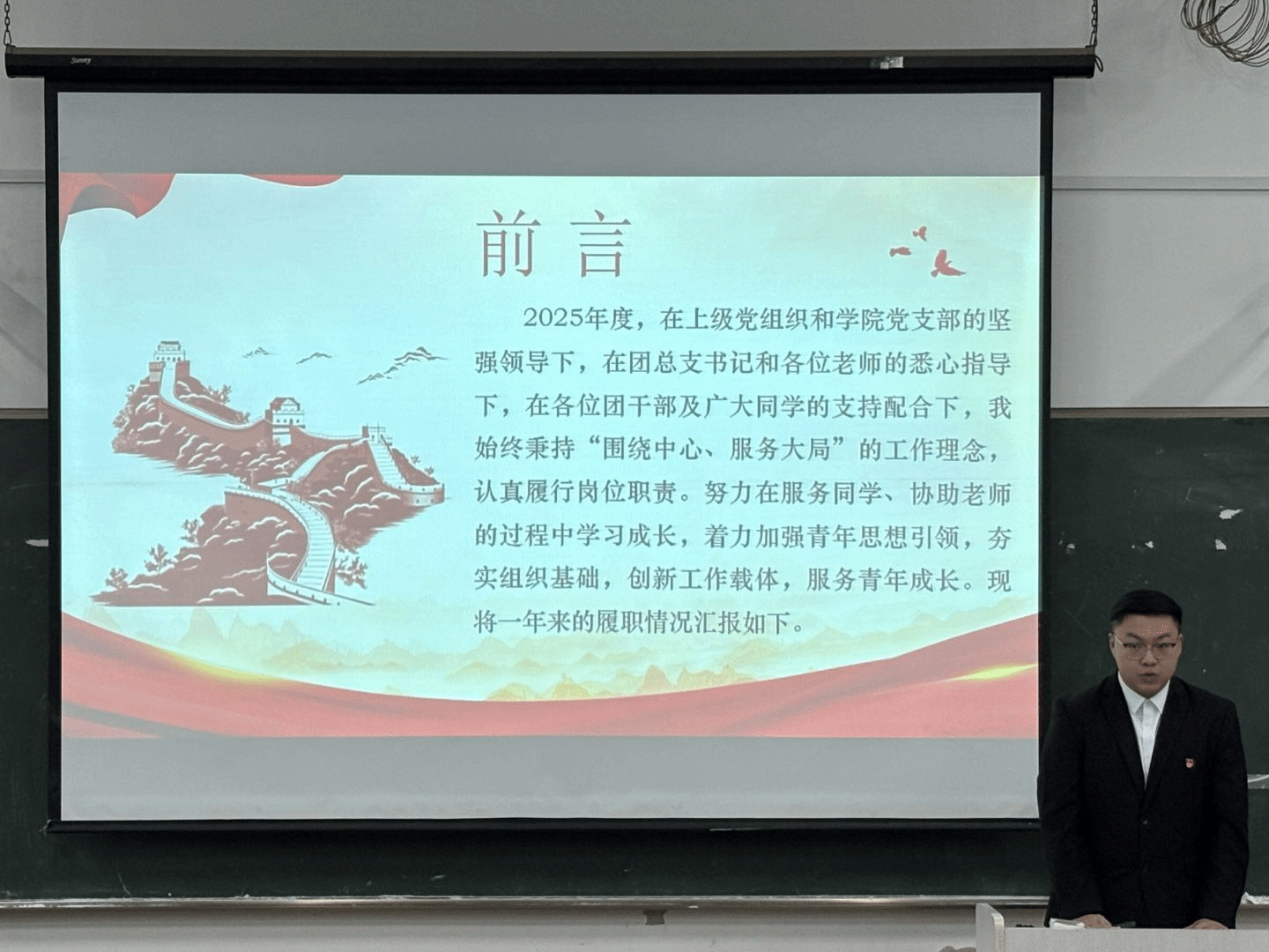 在述职环节,各部门学生干部依次登台,围绕核心工作职责、年度重点成果、实践经验反思及未来规划蓝图展开详实汇报。从宣传部的品牌宣传到团务部的组织建设,从志愿服务的暖心践行到文体活动的精彩呈现,每一份报告都凝聚着责任与心血,既是对过往工作的全面复盘,更是对未来责任的郑重承诺。台下师生专注聆听、认真记录,在交流互鉴中凝聚共识、汇聚合力。