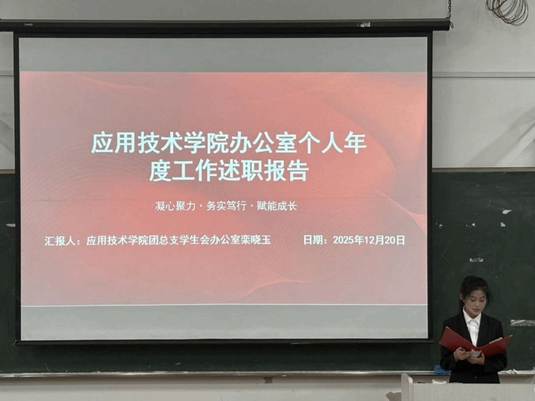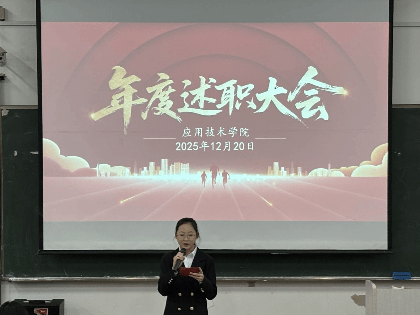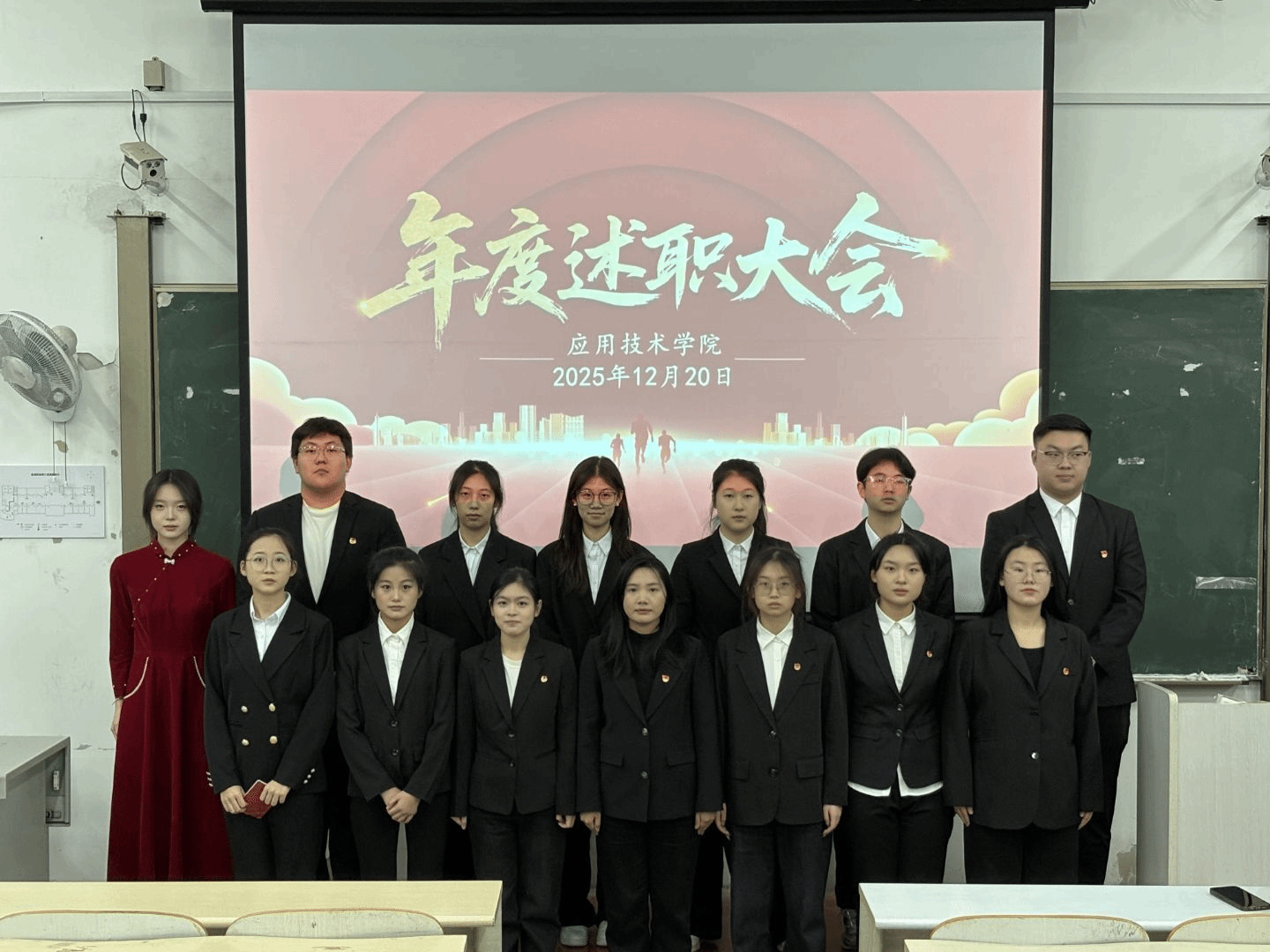 为全面总结过往工作成效,明晰未来发展方向,凝聚团队奋进力量,2025年12月20日16:00,我院2025年团总支学生会学生干部述职大会在实验楼第八阶梯教室隆重召开。应用技术学院团总支书记邬晶新莅临指导,全体学生干部齐聚一堂,共话成长、共绘蓝图。