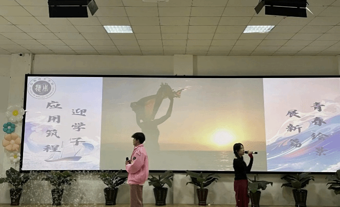 晚会开始前,大屏幕循环播放的暖场视频,如同一幅徐徐展开的青春画卷,串联起学院各类学生活动的精彩瞬间,定格了学子们朝气蓬勃的身影,更收录了师长们对新生的殷切期许与暖心祝福。