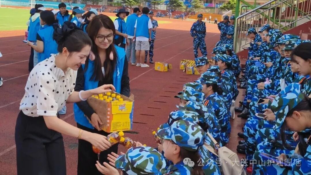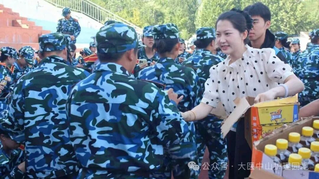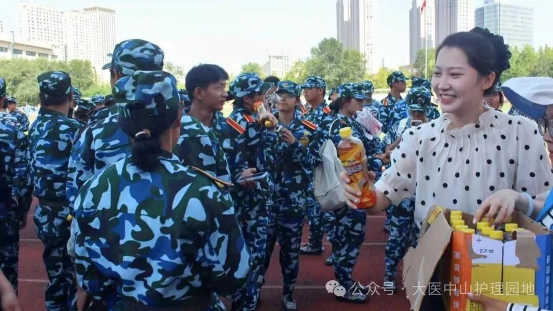 当军训服被汗水浸出浅痕,休息时段终于到来。2025级辅导员赵芷巍老师和新生辅导员助理们将清凉的饮品逐一送到新生手中,同学们欣然迎上前来,眉眼间写满期待。大家井然有序地接过这份心意,眼底漾开的笑意,如骄阳般炽热明亮。