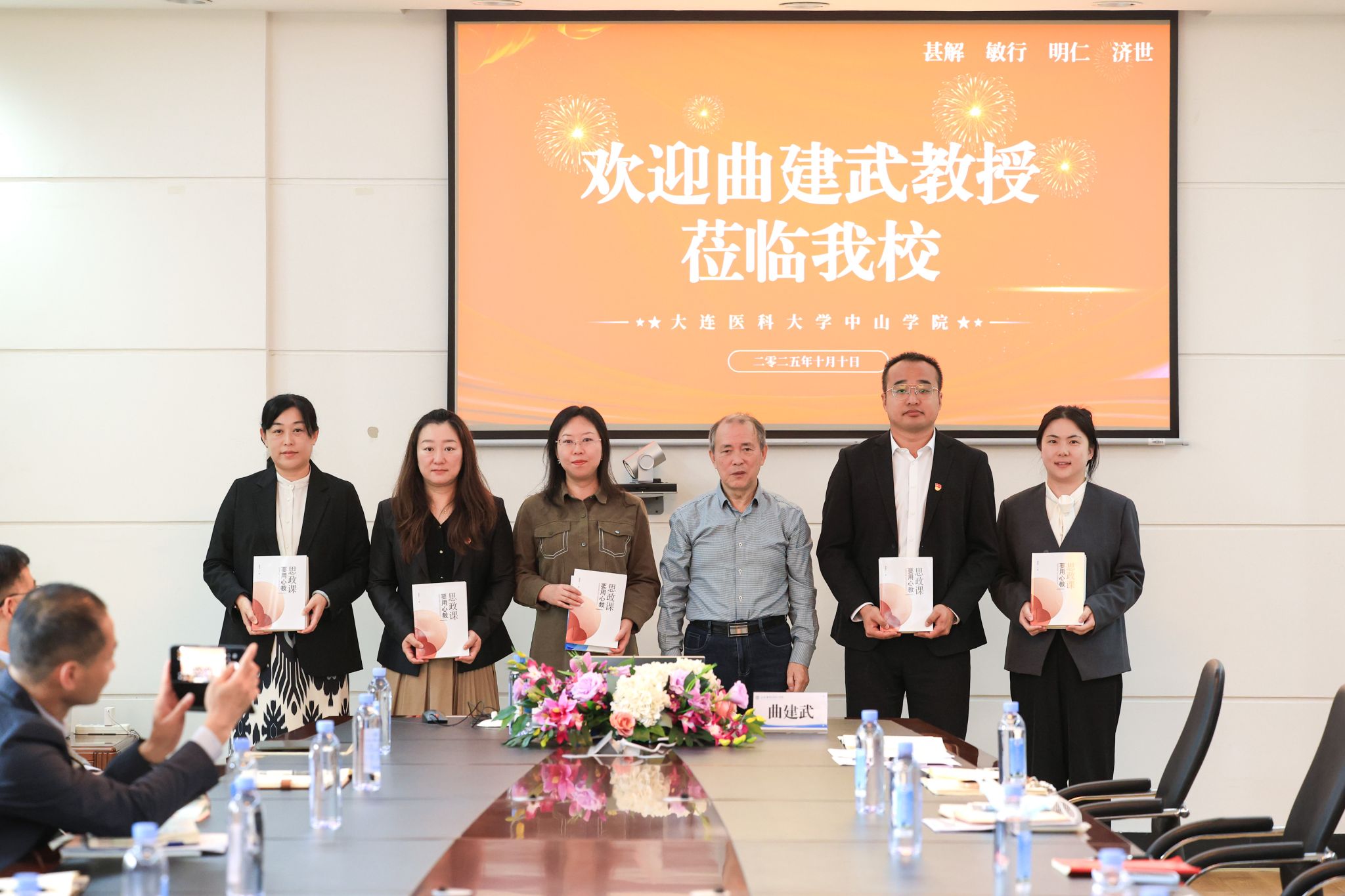 会后,曲建武教授向学院有关部门负责人和青年辅导员代表赠送了两部最新著作,并与全体参会教师和辅导员合影留念。