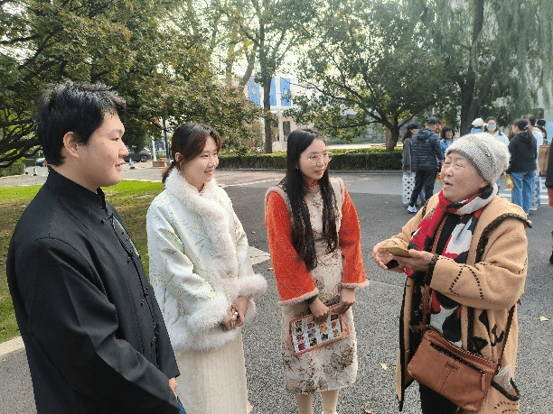 活动中,一位东北财经大学的退休教授在了解到我校师生的专业背景后,深受触动,主动表示愿将其珍藏的中医药学书籍与我校团队共享,并勉励同学们“一定要好好学习,将中国的中医药传统文化发扬光大”。这段跨越学科与年龄的对话,不仅体现了老一辈教育工作者对中医药事业的深切关怀,也为两校合作增添了温情与深度。