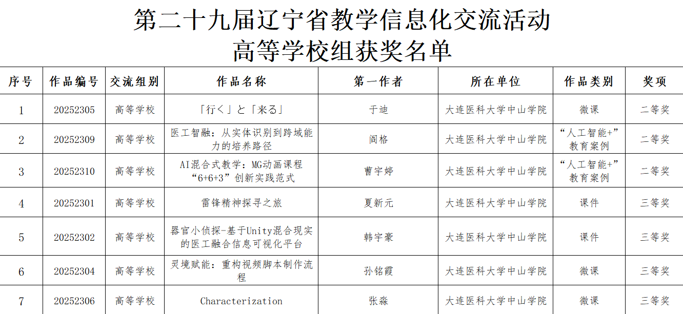 近日,辽宁省教育厅发布《关于第二十九届辽宁省教学信息化交流结果公示通知》。我校积极组织教师参与,最终7项作品脱颖而出斩获荣誉,其中二等奖3项、三等奖4项,充分展现我校在教育教学信息化领域的扎实实力与创新成果。