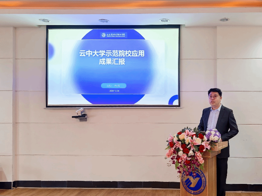 常务副院长张鹏发表致辞,他向各位专家的到来表示热烈欢迎,并对学校教育信息化的举措进行了介绍。他指出,云中大学作为创新型信息生态的突出代表,将有力推动学校信息化建设水平迈上新台阶,进一步提升学校教学、管理与服务的数字化水平,为学校高质量发展贡献力量。