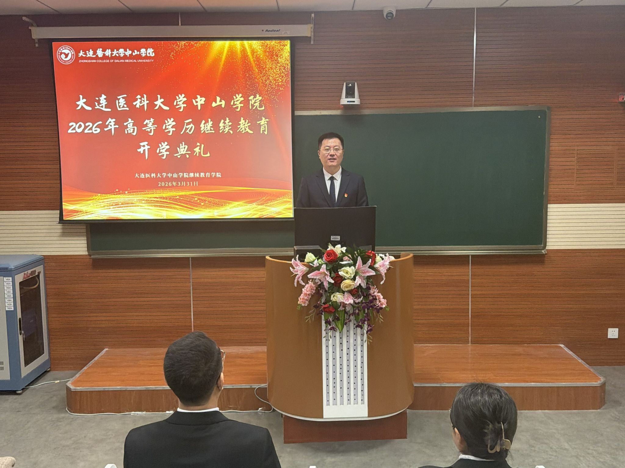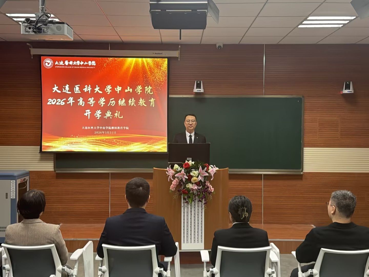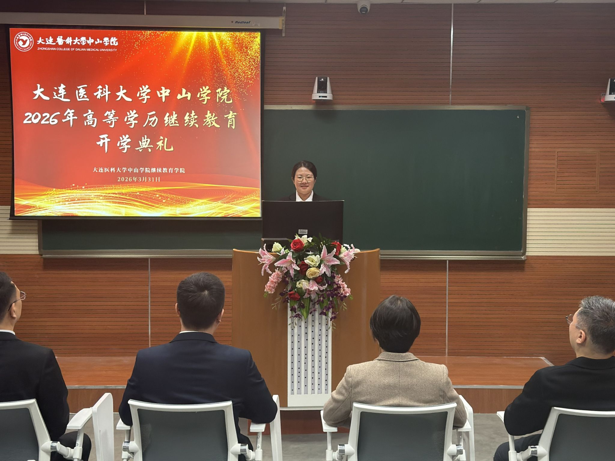 2026年3月31日上午9时,大连医科大学中山学院2026级高等学历继续教育新生开学典礼在智慧融合教室隆重举行,并通过教学平台同步直播。继续教育学院领导、教师代表与全体2026级新生共同参与开学盛典。典礼由继续教育学院副院长高玉旭主持。